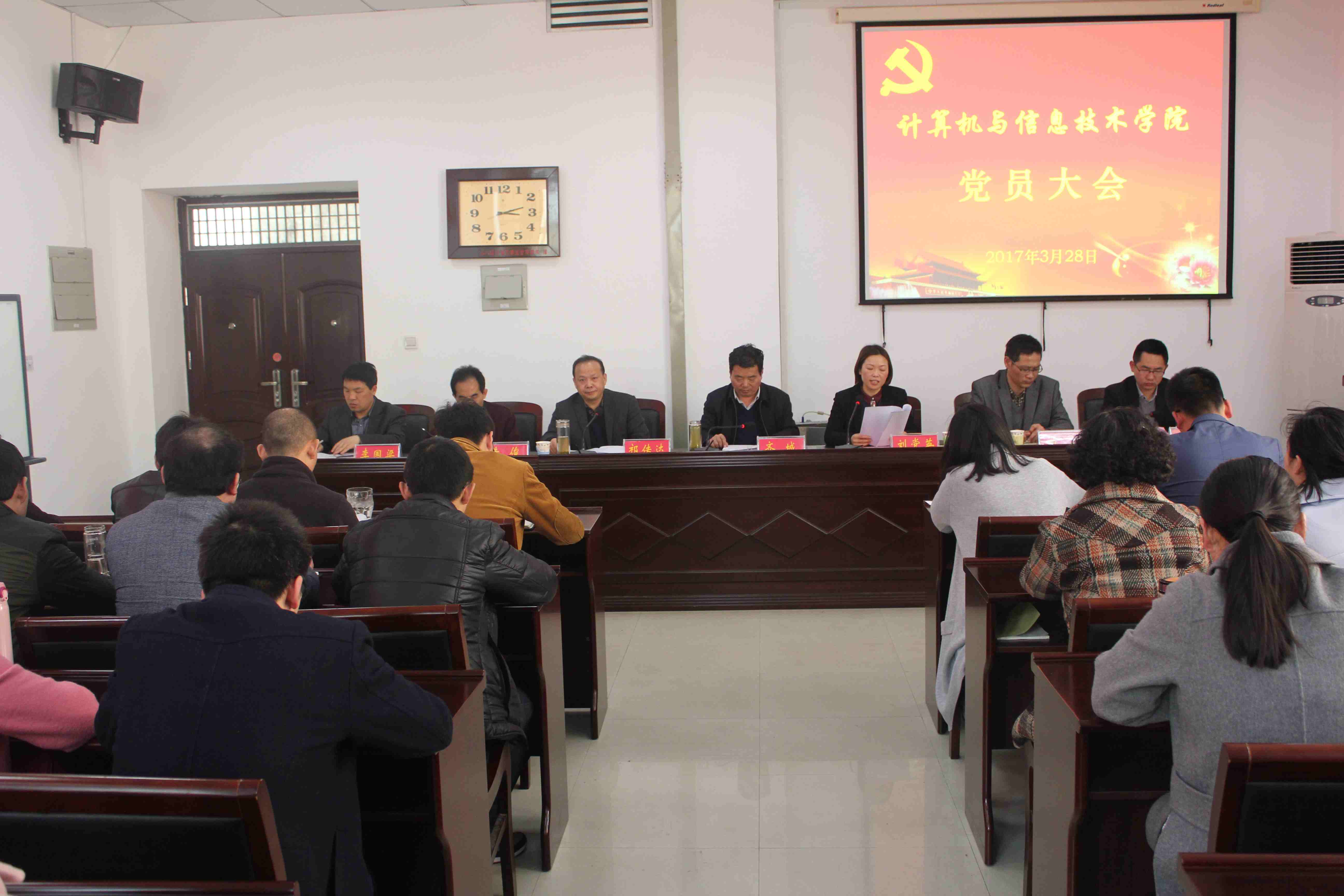 3月28日下午,ok138cn太阳集团古天乐党委换届选举党员大会在计算机楼410会议室隆重举行。副校长齐城到会指导并做重要讲话,大会由院长祁传达主持,全体教工党员和学生党员参加了大会。
