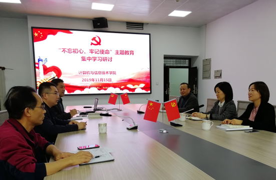 根据学院“不忘初心、牢记使命”主题教育活动方案安排,11月14、15日,ok138cn太阳集团古天乐处级干部围绕“加强思想政治工作 落实立德树人根本任务”进行了第三次集中学习,并于15日下午集中研讨交流。校“不忘初心、牢记使命”主题教育第二巡回指导组成员、人事处副处长汪霞参加会议并就学院推进主题教育进行了指导。