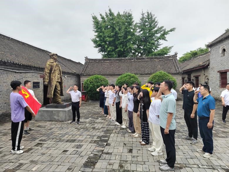 重温入党誓词,坚定理想信念。在确山县竹沟镇的中原局办公旧址,学院党委书记熊炎带领全体党员面向鲜红的党旗,庄重地举起右手,重温入党誓词,铭记入党初心,抒发爱国情怀,坚定理想信念。