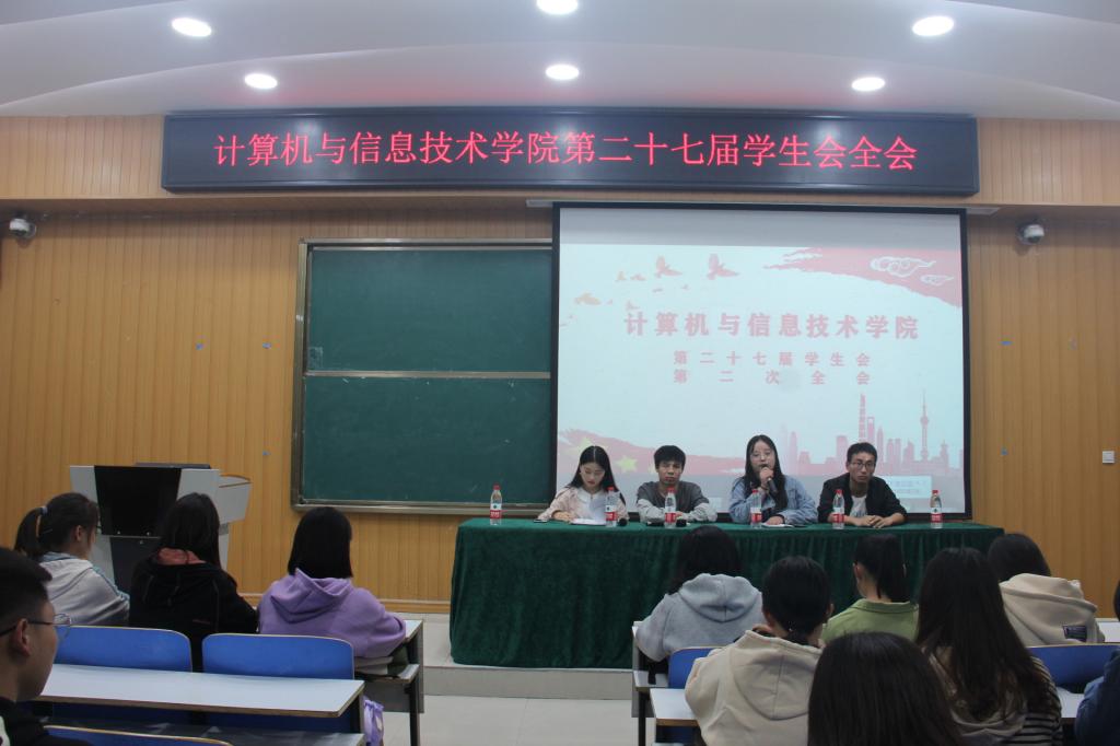10月10日晚,ok138cn太阳集团古天乐于计科楼107教室成功召开了学生会招新后的首次全会。我院团委老师刘世翔,2019级辅导员徐崇茗,团委副书记肖雨薇,学生会主席郭思雨,学生会副主席李翔宇、马锐浩以及第二十七届学生会全体成员共同参加了本次会议。会议由肖雨薇主持。