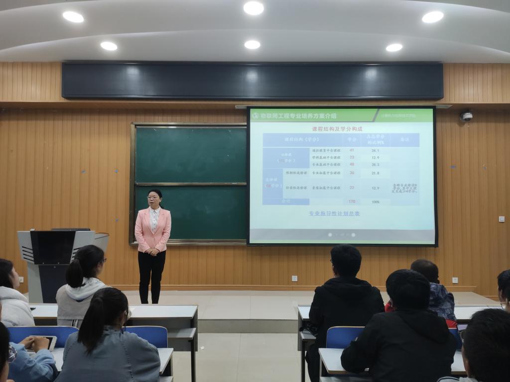 讲座开始,郭颂教授向全体同学表示亲切的问候。她首先结合专业概况、学科建设、专业技术领域、主要就业方向及专业前景,对我院物联网专业新生培养方案作了详细介绍,使我院物联网专业新生对自己所学专业有了更清晰的认识。在介绍过程中,郭颂教授就大学生的学习生活及未来职业选择等问题提出了恳切的建议。她表示,希望新生将主要精力放在学习专业课程上,学习之余积极参加校内活动,培养兴趣爱好,全方面发展,让自己未来的四年大学生活变得丰富而有收获。讲座结束后,新生纷纷表示,经过此次讲座,自己对将来的四年大学学习生活有了更清晰的规划。