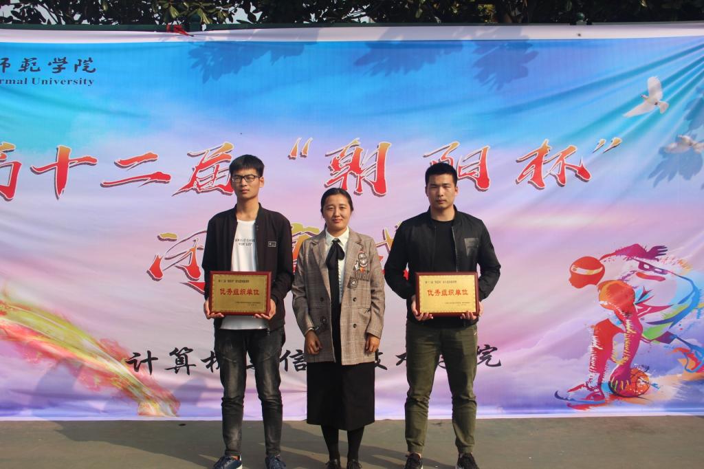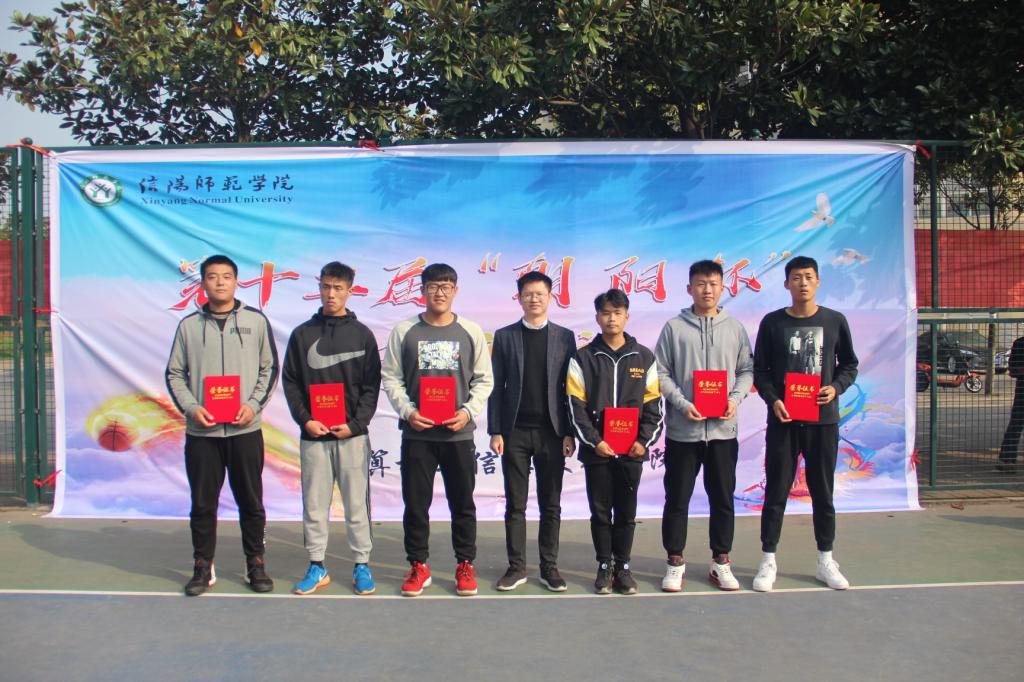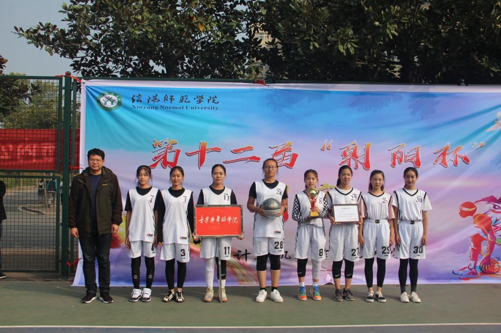 我院篮球宝贝热情活力的舞蹈与体育学院刚劲有力的跆拳道表演过后,颁奖典礼正式开始。物理电子工程学院、数学与统计学院、国际教育学院分别摘获本届“朝阳杯”男篮的冠、亚、季军。地理科学学院、音乐与舞蹈学院、商学院分别摘获本届“朝阳杯”女篮冠、亚、季军。地理科学学院球员覃昌利与物理电子工程学院球员赛孜古尔江荣获最有价值球员奖。杨昊等6位裁判荣获“金哨奖”。数学与统计学院等10个学院荣获精神文明单位称号。我院与体育学院荣获优秀组织单位称号。