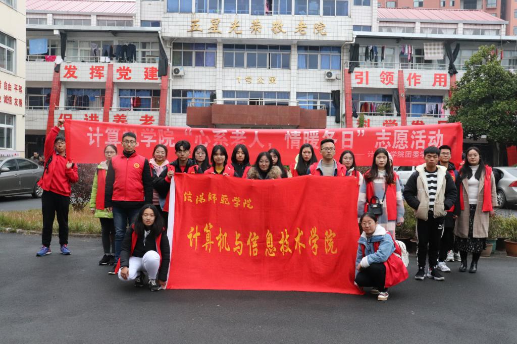 为号召当代大学生践行社会主义核心价值观,11月30日,ok138cn太阳集团古天乐组织学生会、电脑爱好者协会、Crazy轮滑协会部分成员组成志愿团队,前往信阳市五星光荣敬老院看望孤寡老人,让老人们感受到来自社会的关怀。我院学生会主席郭思雨,副主席李翔宇担任领队。