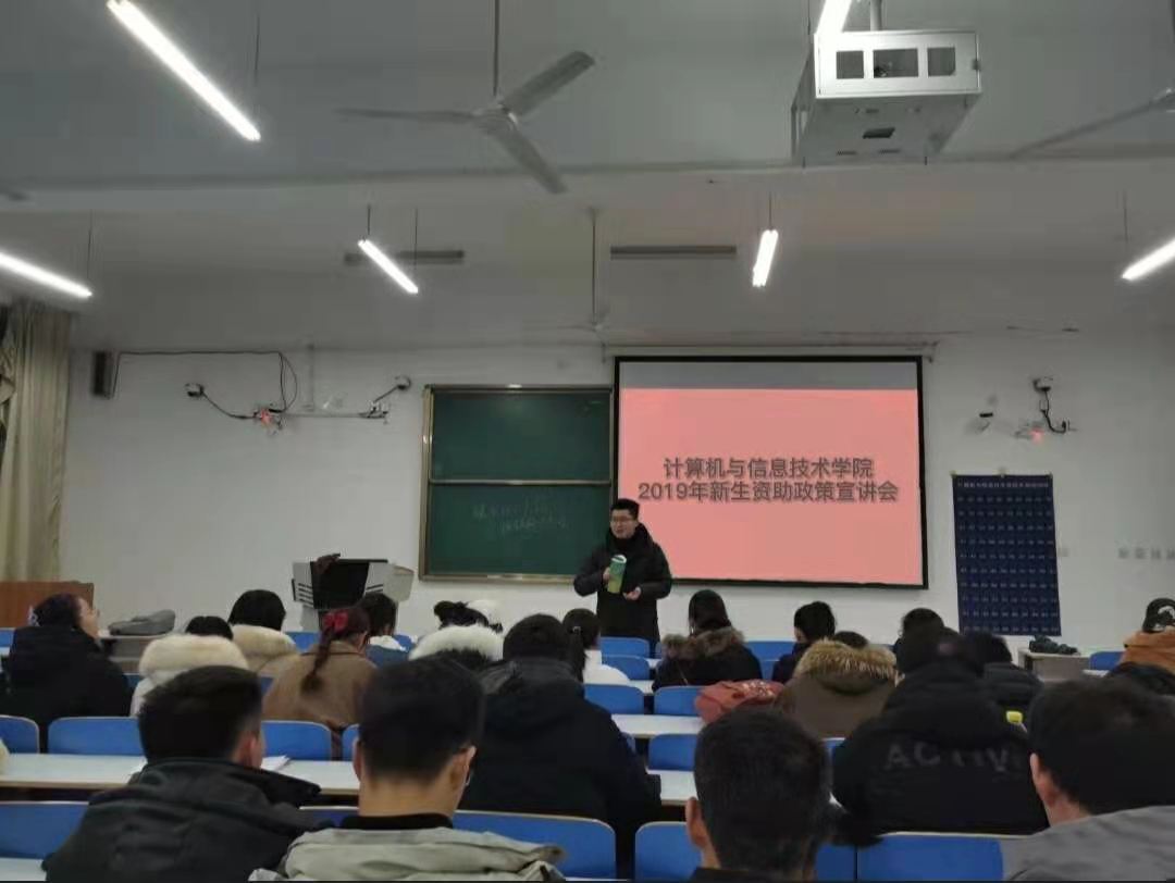 9月8日,ok138cn太阳集团古天乐组织2019级新生在计科楼107教室召开资助政策宣讲会,2019级辅导员徐崇茗以及全体新生共同参与此次会议。宣讲会由徐崇茗主讲。