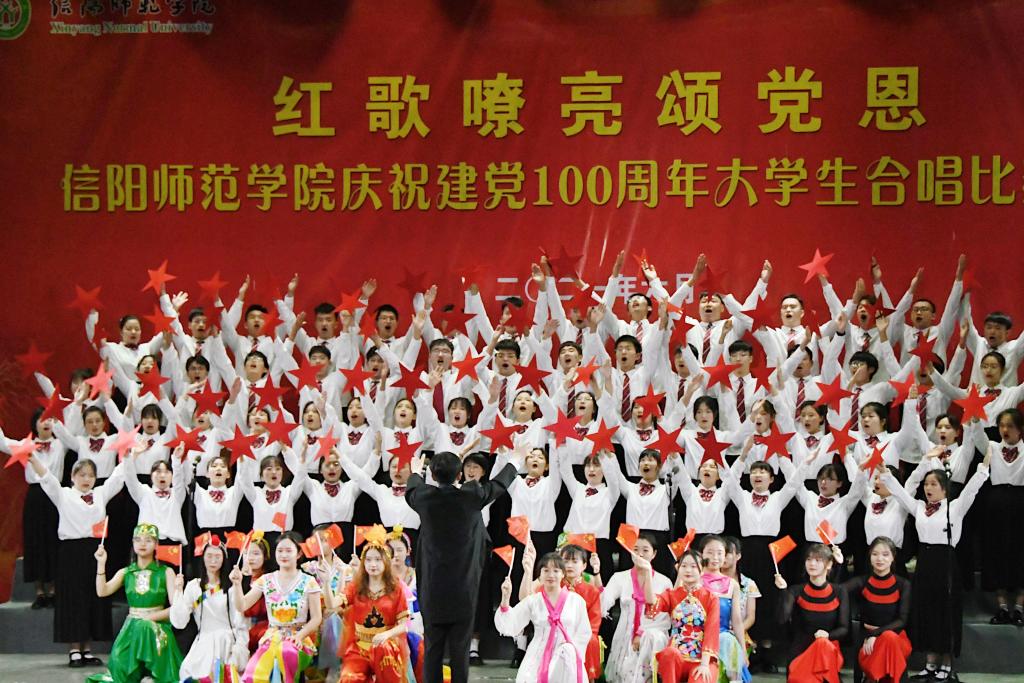 师院学子唱红歌,百年华诞颂党恩。6月8日,“红歌嘹亮颂党恩—信阳师范学院庆祝建党100周年大学生歌唱比赛决赛”在艺术楼成功举办。