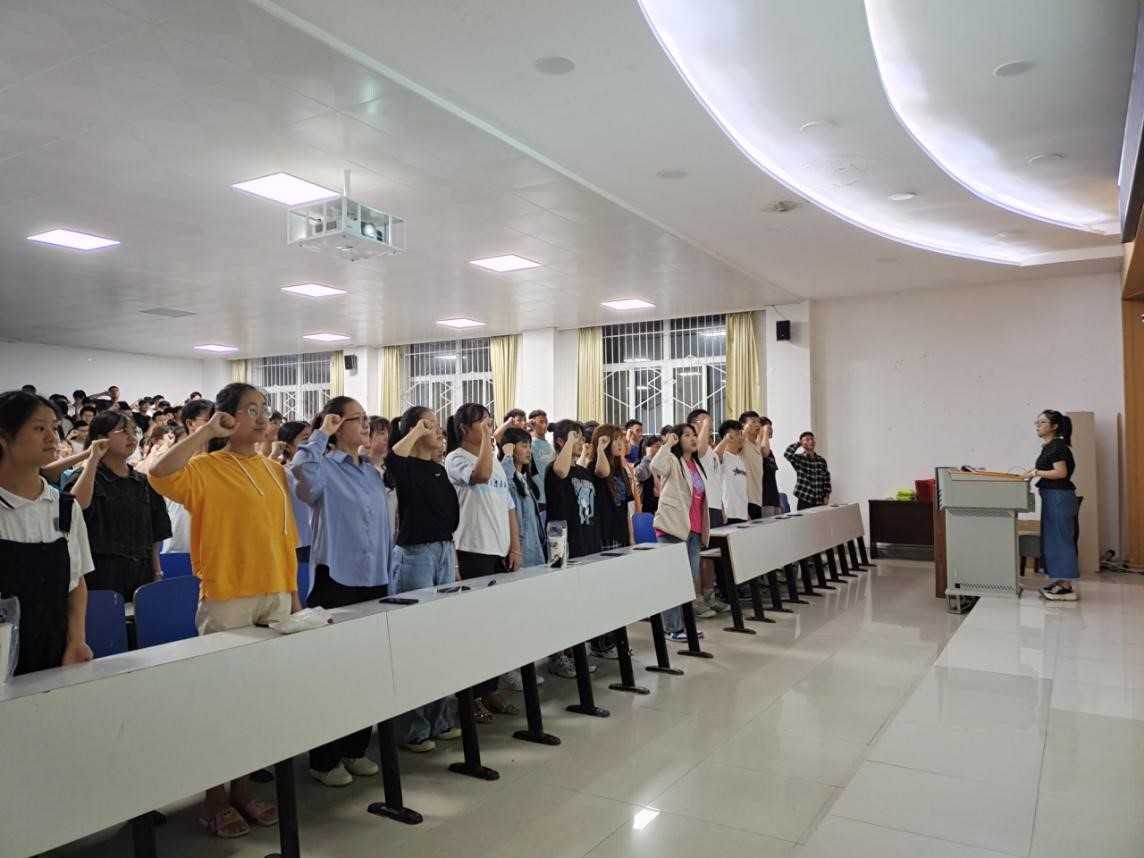 会议伊始,学生代表王冉带领全体学生进行诚信宣誓,承诺要言行一致,讲求诚信,进一步坚定了创诚信校园、树诚信学风、做诚信学子的决心。