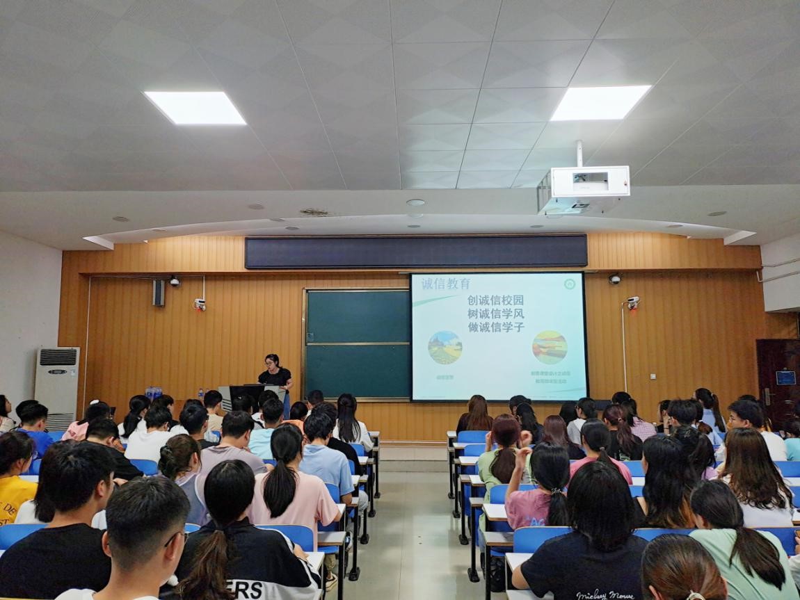 6月19日晚7时30分,ok138cn太阳集团古天乐于计科楼107教室召开诚信主题教育大会,辅导员王丝雨携2020级全体学生参会。