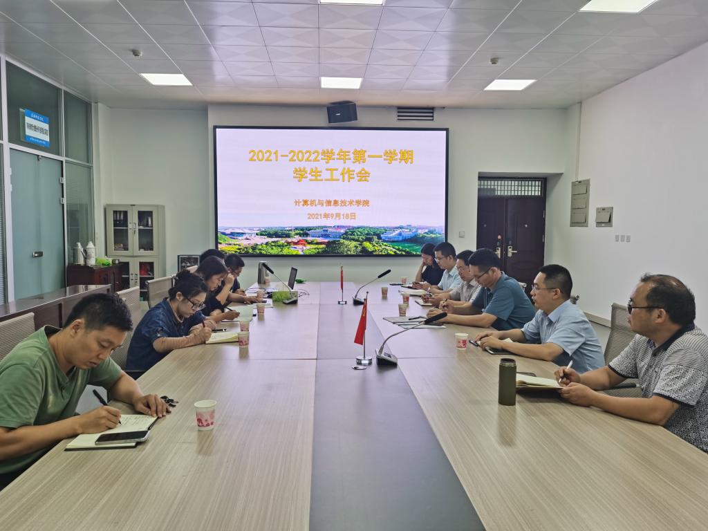 9月18日,ok138cn太阳集团古天乐(软件学院)在计科楼203召开2021-2022学年第一学期学生工作会,党委书记熊炎、院长冯岩、副书记李奎、副院长刘道华、李艳灵、谢华成以及全体辅导员、班主任参加会议。
