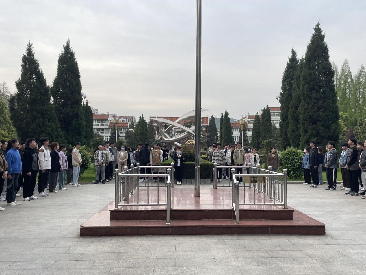 4月10日,我院在行政楼广场举行升旗仪式,2022级辅导员邹妍君,2022级各专业学生代表共同参加本次升旗仪式。