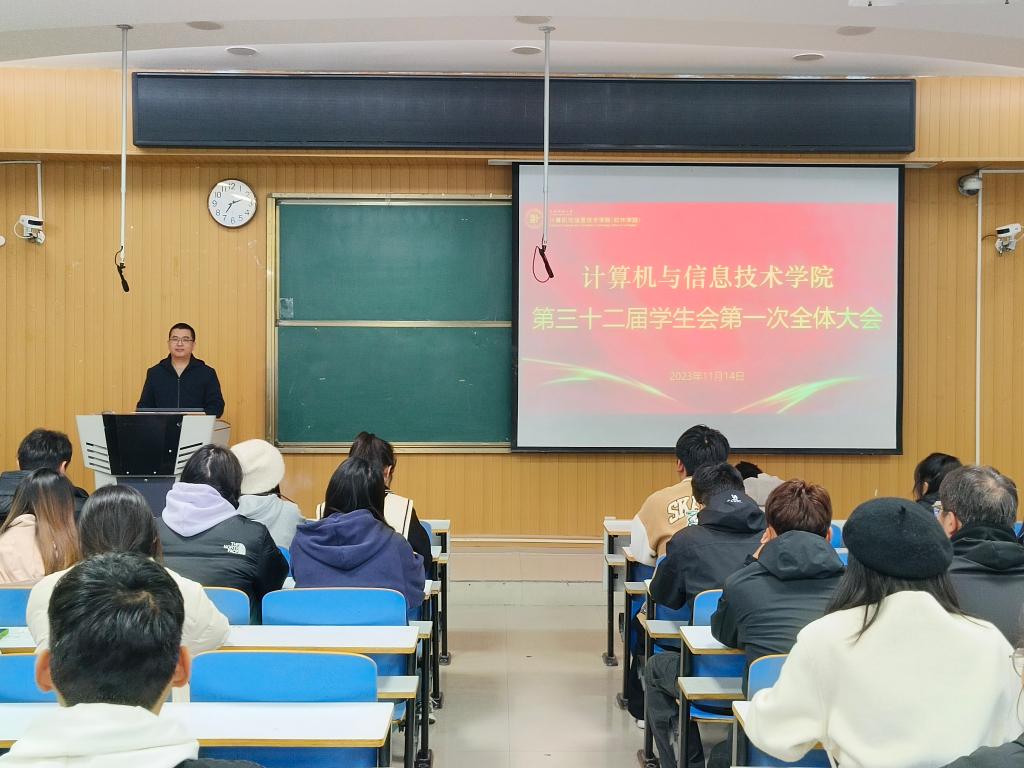 11月14日,我院第32届学生会全体会议于计科楼107教室顺利召开,院党委副书记李奎、院团委老师易雯雯、学生会全体成员共同参加,会议由学生会执行主席张志军主持。