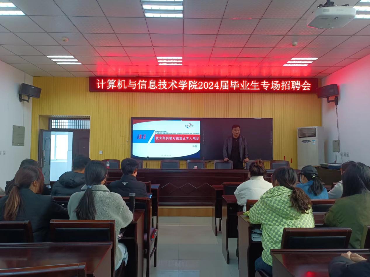 11月24日下午,我院在计科楼410会议室召开2024届毕业生专场招聘会,会议由中国中小企业协会成员孙磊主讲,部分2024届毕业生和2021级党员代表参加。