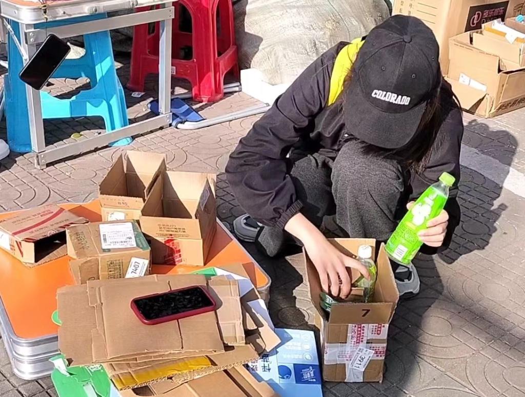 本次活动采取“以物换物”的方式进行,参与者只需携带废弃无用的纸箱、塑料瓶等物品,即可在活动现场兑换植物标本书签及盆栽绿植,参与方式简单便捷,兼具环保理念。活动开始,同学们积极响应,陆陆续续携带纸箱来到活动现场进行捐献,有序地在帐篷前排队等待,工作者根据大小将纸箱分类整齐,便于后续的回收利用。参与者在规定时间内将纸箱交给工作者,由工作者统计数量、发放奖品。活动结束后,工作者清点物品、分类整理、统一回收,将所得资金全部捐赠于公益项目。这些大大小小、形态各异的纸箱、水瓶饱含着同学们支持环保的热情。