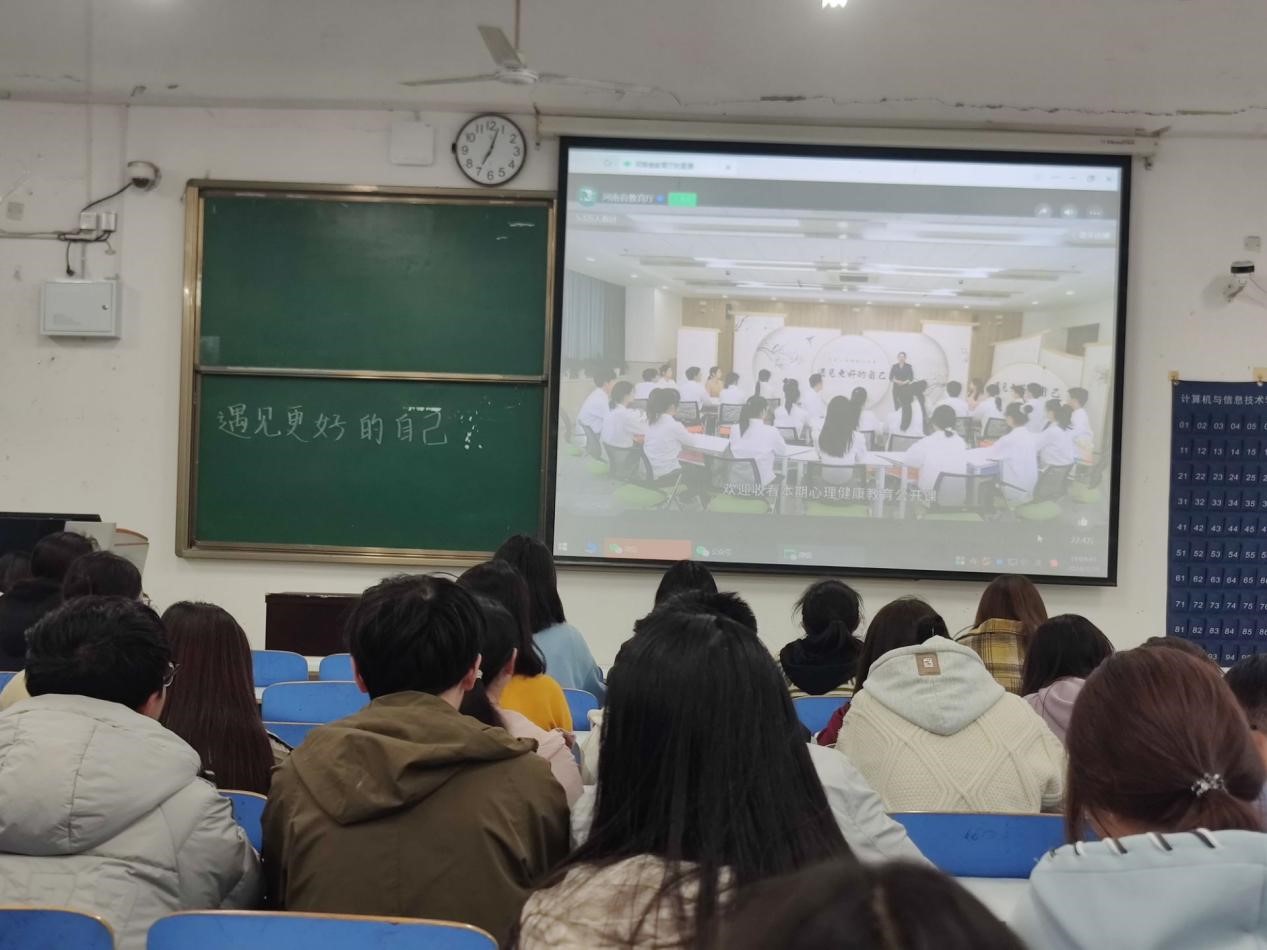为进一步加强大学生心理健康教育,帮助同学们更好地认识自己,我院于3月16日于计科楼106教室举办收看“遇见更好的自己” 主题心理健康公开课活动。2023级计算机科学与技术专业一班和二班全体同学到现场观看。
