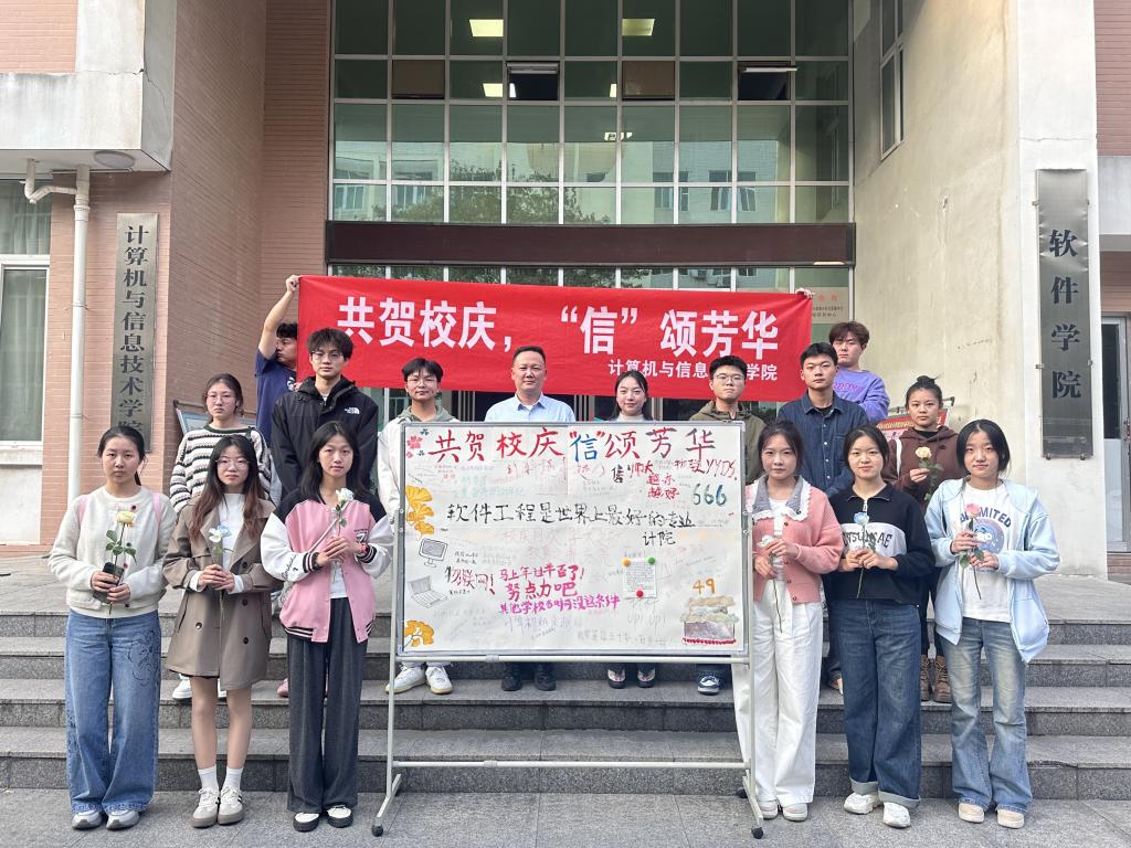 10月28日,我院于计科楼前举办“共贺校庆,‘信’颂芳华”主题活动,学院党委副书记杨阳与我院学子共同参与此次活动。