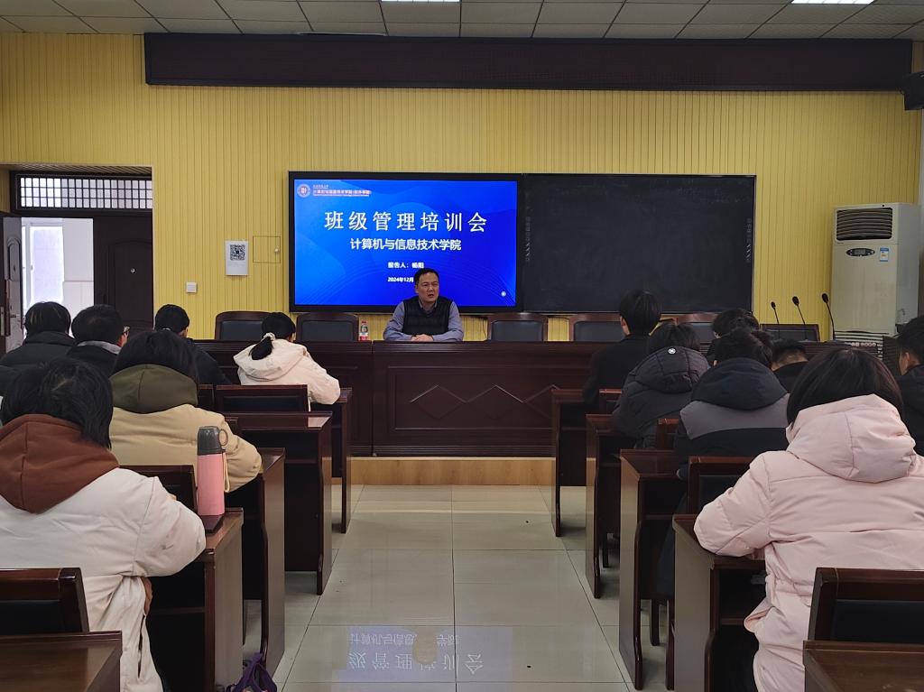 开展班级管理教育培训,提质班风学风建设。为更好促进学生全面发展、提升团队协作能力,从而塑造优良学风,该院面向全体专兼职辅导员和学生班干部群体召开班级管理培训会,学院党委副书记杨阳作《班级管理能力培训》辅导报告。他指出,班级管理者应秉承以人为本、公平公正、民主集中、目标指向的原则,明确好自身的角色定位,做好加强学风建设、积极策划活动、指导人际交往、加强安全教育、建立应急机制等一系列工作,以高标准、严要求完善班级日常管理,不断提升管理思维,加强班级管理成效。