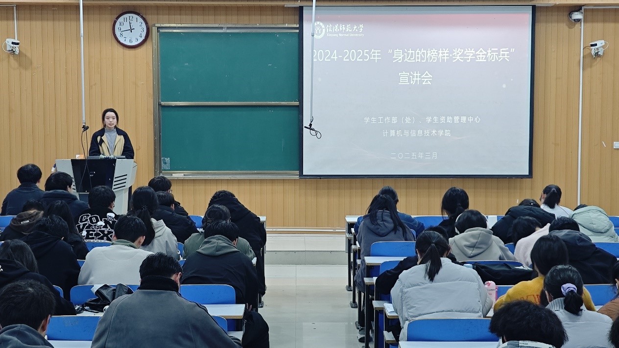 为响应习近平总书记强调新时代新征程必须深刻把握中国式现代化对教育、科技、人才的需求号召,强化教育对科技和人才的支撑作用,进一步形成人才辈出、人尽其才、才尽其用的生动局面。3月12日,我院于计科楼107教室组织开展“2024-2025年身边的榜样·奖学金标兵”宣讲会,奖学金标兵优秀代表和我院200余名学生一同到场参加。