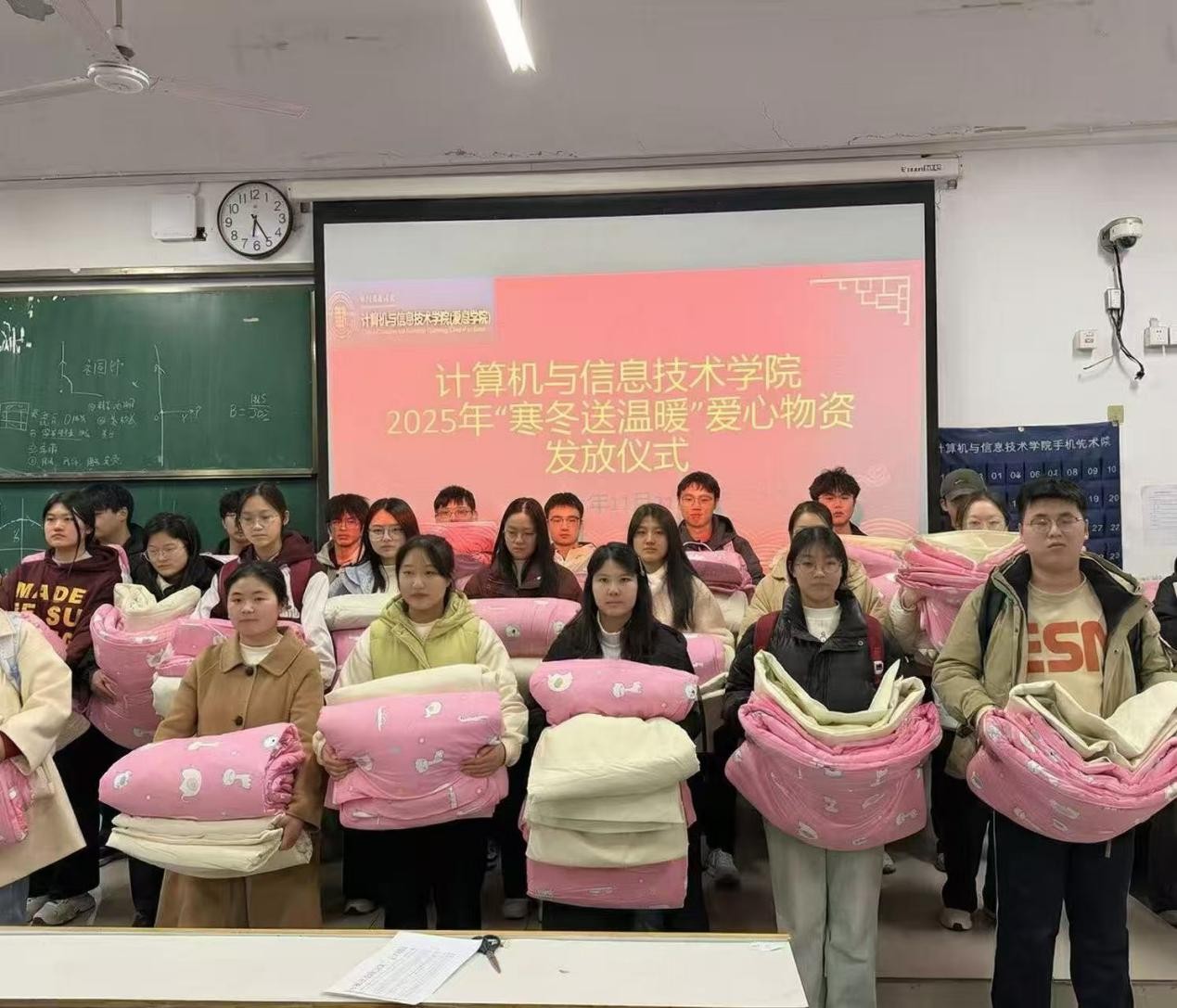 为深入落实国家学生资助政策,扎实推进资助育人工作,切实帮助家庭经济困难学生温暖过冬,强化学生诚信感恩意识,11月24日,我院在计科楼104教室隆重举行2025年“寒冬送温暖”爱心物资发放仪式暨诚信感恩主题教育活动。