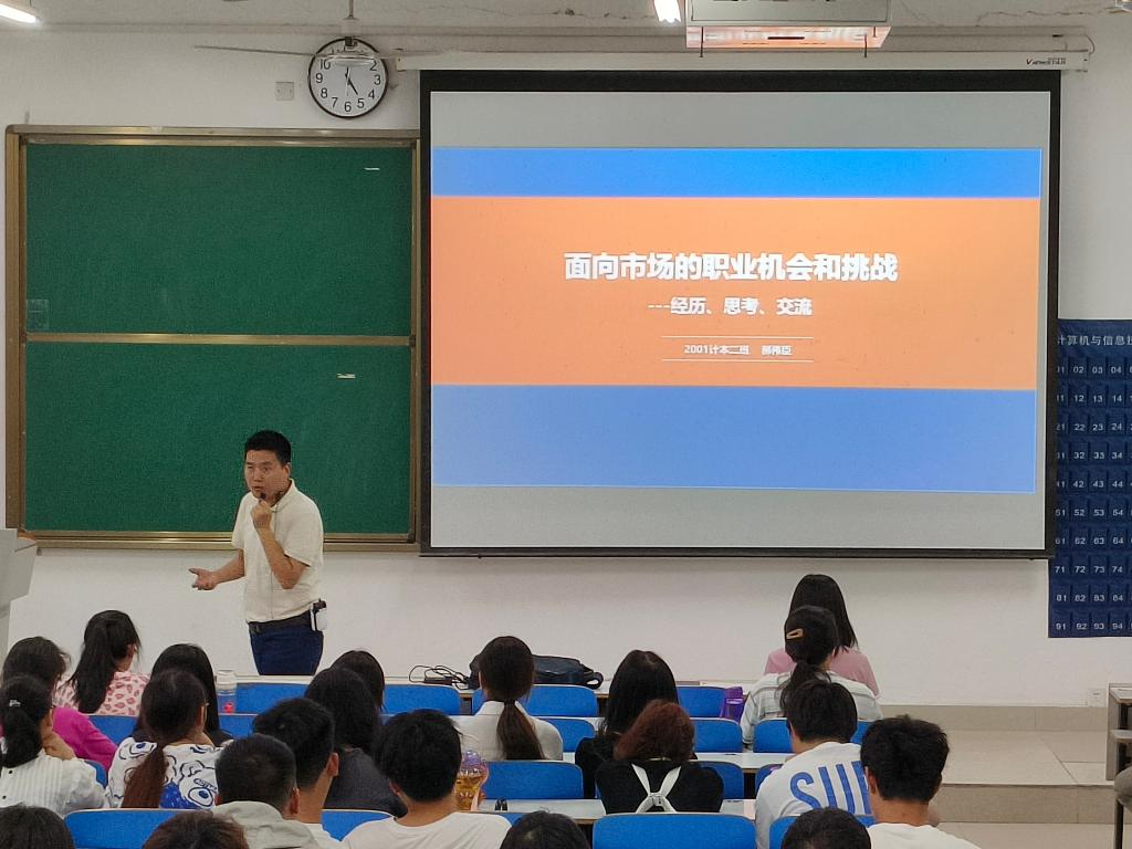 6月16日,深圳求实人力资本CEO、我院2001级校友郝伟臣作“面向市场的职业机会和挑战”的主题报告。我院党委副书记李奎、辅导员邹妍君以及200余名学生共同参加报告会。