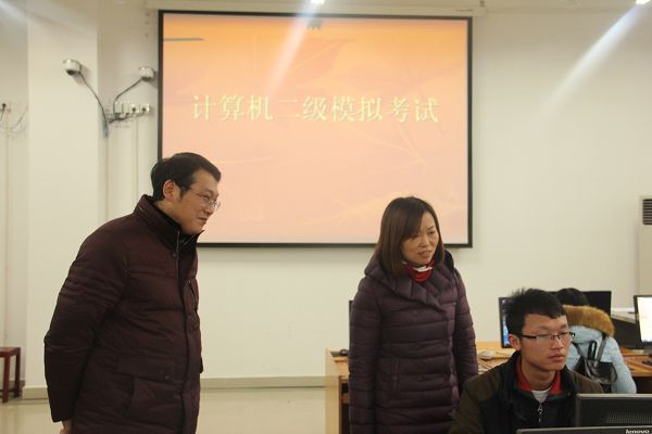 为了惠及更多的同学,让大多数同学都能够参与体验计算机二级考试的模式及过程,本次考试分设两场,每场考试都启用多个教室同时进行,考试科目分为二级C,二级access和MS office高级应用,考试内容分为选择题,操作题两个项目。本次考试遵从正式考试的模式与要求,并安排了相关的工作人员进行监考与辅助考试,整场考试严整有序的进行。考试期间,计算机学院党委书记刘党英、副书记谢蕾,辅导员刘勇、杨帆,陈星雨等老师亲临考试现场,视察考试情况。刘书记与谢书记指出,在正式考试之前进行模拟考试可以达到事半功倍的效果,鼓励同学们要积极参加类似的的模拟考试,提高自己的应试能力。