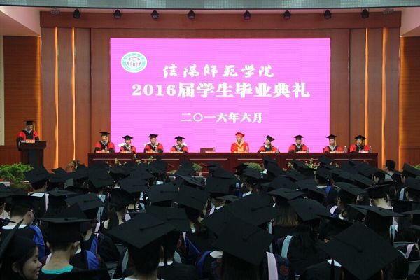 毕业典礼在庄严雄浑的国歌声中拉开帷幕。首先,刘宏兵宣读了《信阳师范学院关于授予2016届毕业生学士学位的决定》和获得学士学位的毕业生名单;接着,邬长安致词,对2016届毕业生顺利完成学业表示真诚地祝贺、对为同学们的成长付出辛勤劳动的全体教职工以及支持同学们顺利完成学业的家长和朋友们表示衷心地感谢,他总结回顾了毕业生四年来的成长历程,分析了其专业发展的美好前景,提出了殷切期望,表达了美好祝福。毕业生代表王君同学在发言中回忆了充实的学习生活以及与老师们相处的美好时光,他汇报了自己的进步和收获,并表达了毕业生祝愿母校越办越好的共同心声。在校生代表王寒冰同学为学长学姐们送上了深情的祝福和美好的祝愿。