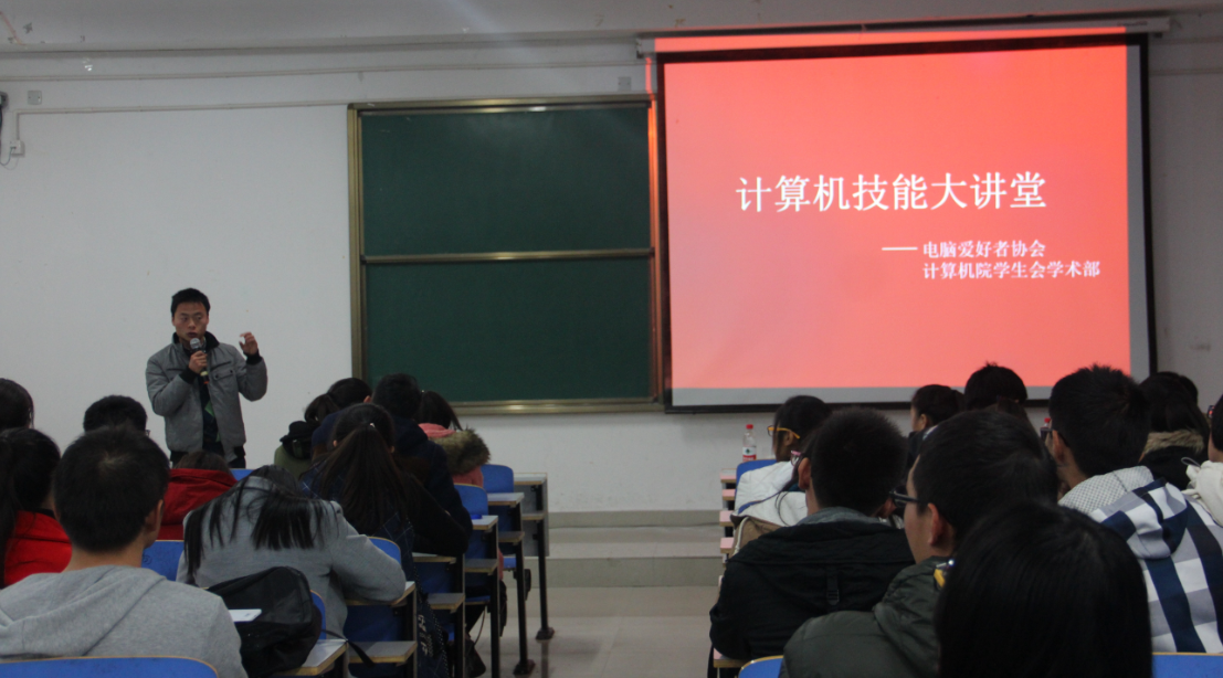 11月20日晚,由计算机学院电脑爱好者协会和计算机学院学生会学术部举办的计算机技能大讲堂,在计科楼107成功举行。电脑爱好者协会指导老师黄氏东应邀出席,计算机学院学生会和电脑爱好者协会全体成员参加此次讲堂。此次技能大讲堂由电脑爱好者协会技术部部长焦安楠授课。