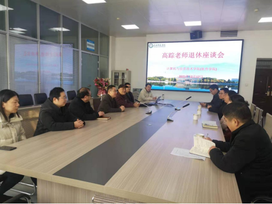 12月17日上午,在我院计算机楼203会议室召开高踪老师退休座谈会。人事副处长周巧云、离退处副处长樊德玲、学院领导班子成员等参加了会议。学院党委书记熊炎主持会议。