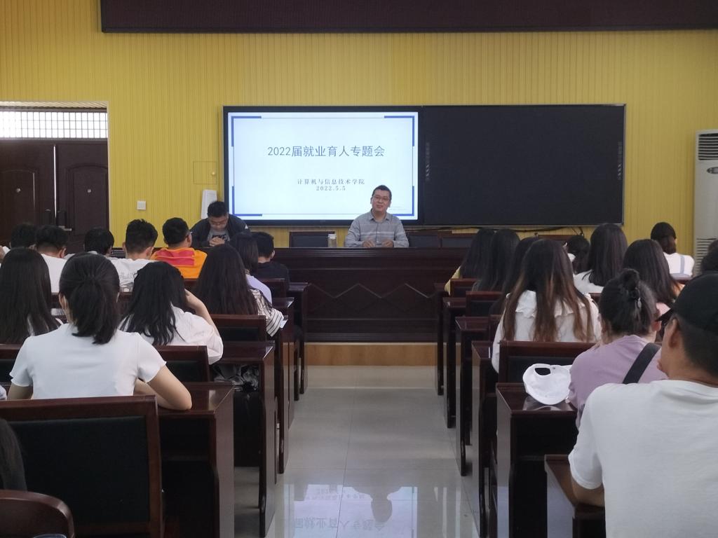 5月5日,我院在计科楼410会议室召开2022届毕业生就业育人专题会,学院党委副书记李奎,思政与就业指导教研室主任刘世翔和60余名毕业生参加专题会。