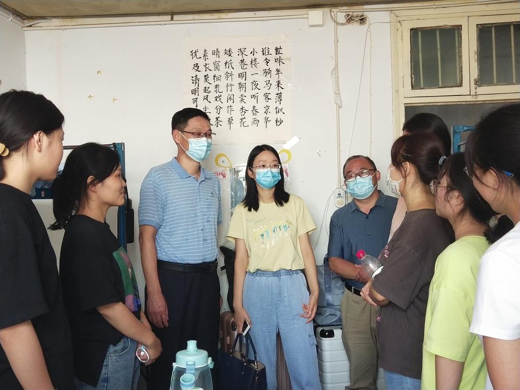 9月12日下午,我院领导班子成员及全体辅导员(班主任)走访新生宿舍,看望、慰问新同学,耐心回答同学们提出的各项问题,提醒新生做好防疫防护,鼓励大家和谐相处,积极参加学校各项活动,尽快适应大学学习生活方式,树立远大目标,开启新征程。新同学们纷纷表示将秉承“厚德崇实,善学敏行”的校训,确立目标、脚踏实地,全力迎接大学生活,在矢志奋斗中书写青春华章。