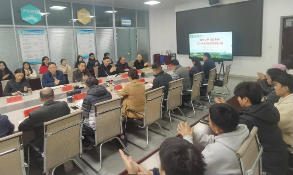 2024年11月26日下午,我院在计科楼203会议室召开“倾听心声 共创未来”师生面对面座谈会。学院班子全体成员、合作企业执行院长、系(实验室)主任、实习实训中心主任、教学工作秘书、各班级学生代表40余人参加了座谈会。会议由教学副院长刘道华主持。