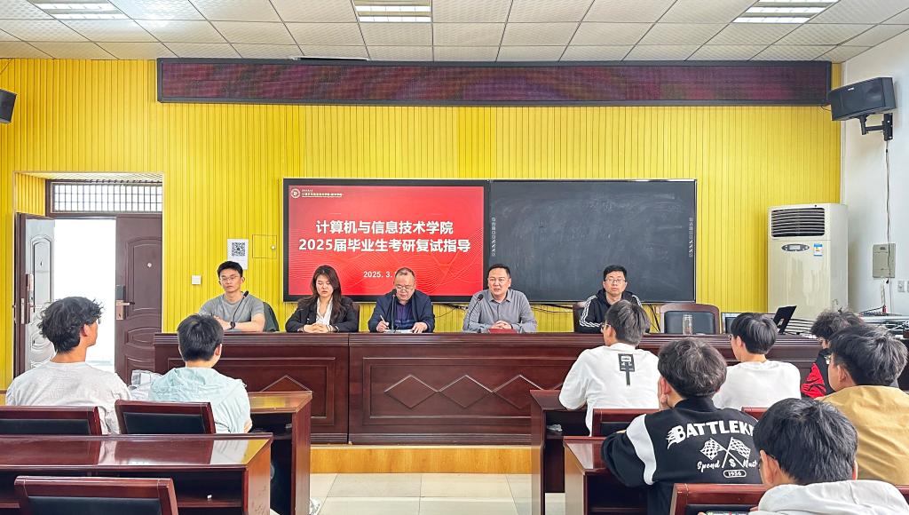 3月25日,我院于计科楼410教室举行2021级毕业生考研专题辅导会,进一步做实做细考研复试指导服务工作。学院党委副书记杨阳、副院长刘道华、物联网工程系主任孙剑、郭彤老师及2021级准备参加考研复试的学生参会。