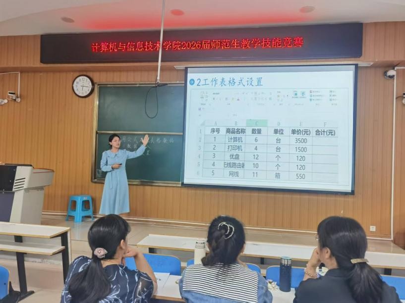 为强化我院师范生教学基本素质和基本能力,培育师德师风高尚、教学理念先进、教学技能扎实的优秀教师后备力量,使学生能更好地适应基础教育改革发展对高素质师资的需求,我院于5月20日下午在计科楼107教室举办了2022级师范生教学技能比赛。比赛由学院教学督导专家、教学技能专家担任评委,学院党委书记、院长到场指导。