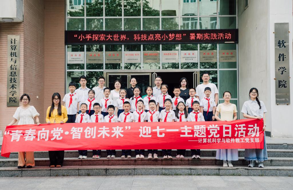 6月29日,我院计算机科学与软件教工党支部成功举办了“青春向党 智创未来”迎“七一”主题党日活动,接待了来自信阳市第三小学的20余名小学生,助力他们开展暑期研学实践。学院党委书记熊炎、教师党员参与了此次活动。